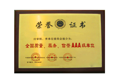 诚信3A企业证书